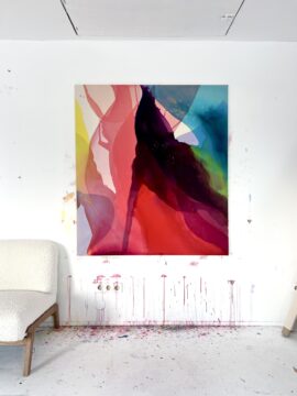 „Luminous“. 97x116cm. Acrylics, oil stick, oil pastels, coloured pencil, raw cotton canvas. AVAILABLE.